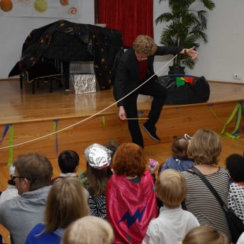 After an hour of fun “Weltall” themed activity stations, Magic Show with “Lukas, der Zauberer”, our song and dance party to classic Karneval was a hit with the kids…